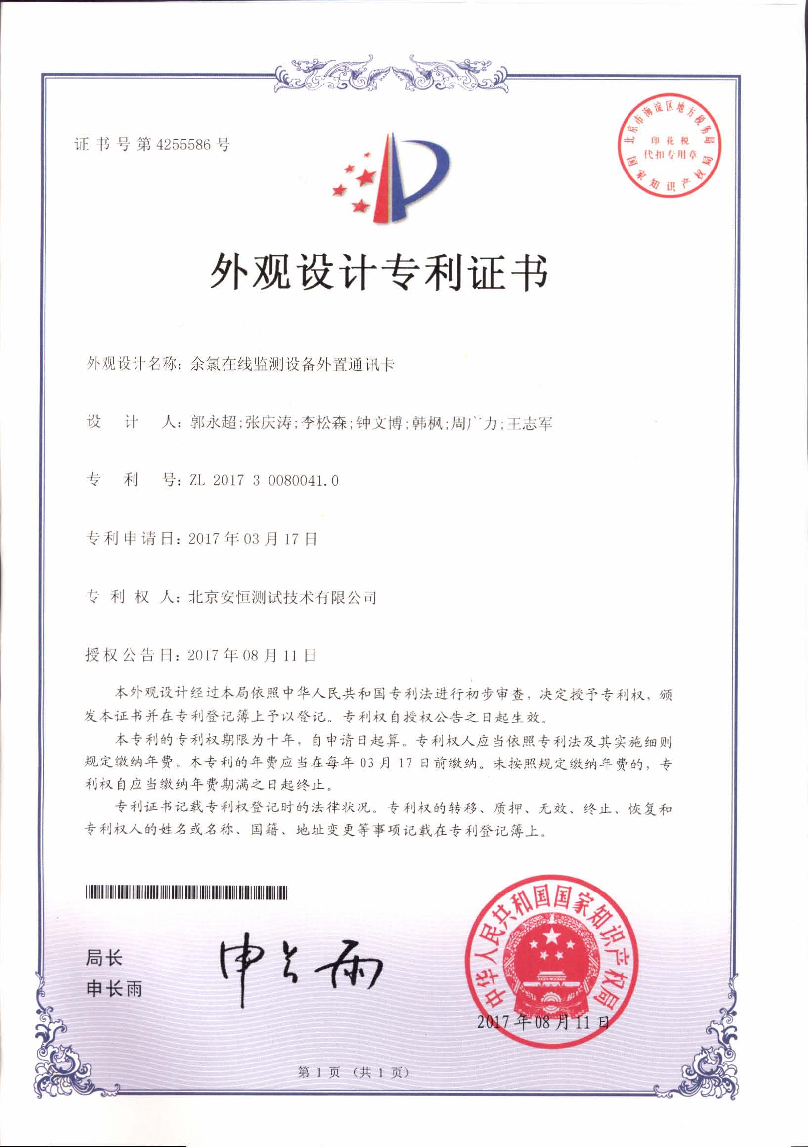 外观设计-余氯在线监测设备外置通讯卡